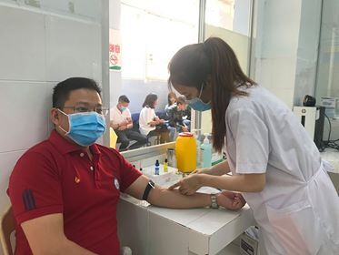 Một thành viên CLB hiến máu nóng hiểu và thương đang hiến máu