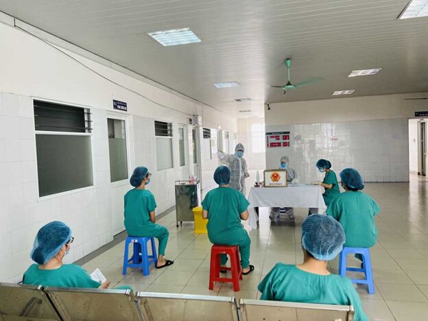 Tại Bệnh viện số 2 (đặt tại Bệnh viện Phổi Quảng Ninh), tổ bầu cử thuộc khu vực bỏ phiếu số 8, khu 6, phường Cao Xanh, TP Hạ Long cũng phối hợp cùng Ban giám đốc Bệnh viện Phổi và Bệnh viện số 2 tổ chức bỏ phiếu với hòm phiếu phụ cho các cử tri là bệnh nhân Covid-19 và y, bác sĩ đang làm nhiệm vụ điều trị cho bệnh nhân Covid-19.