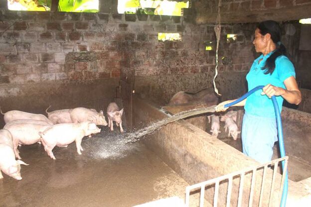 Người dân TX Quảng Yên vệ sinh chuồng trại để phòng, chống bệnh dịch tả lợn châu Phi.