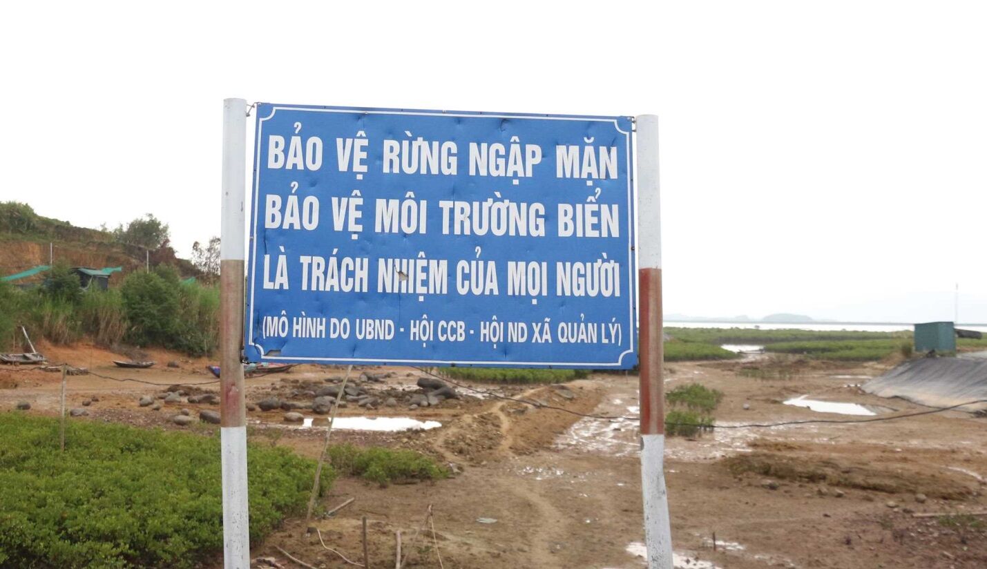 Pano tuyên truyền người dân nâng cao ý thức bảo vệ rừng ngập mặn thôn Cái Khánh và môi trường biển.