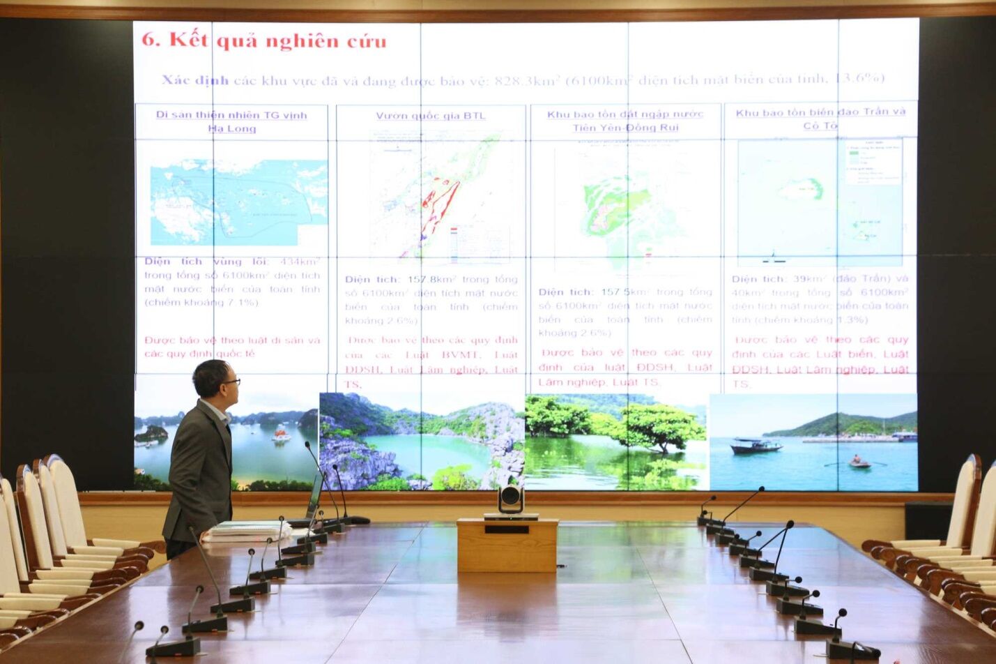 Đơn vị tư vấn báo cáo UBND tỉnh về quy hoạch thiết lập hành lang bảo vệ bờ biển tỉnh Quảng Ninh. Ảnh chụp tháng 2/2020.