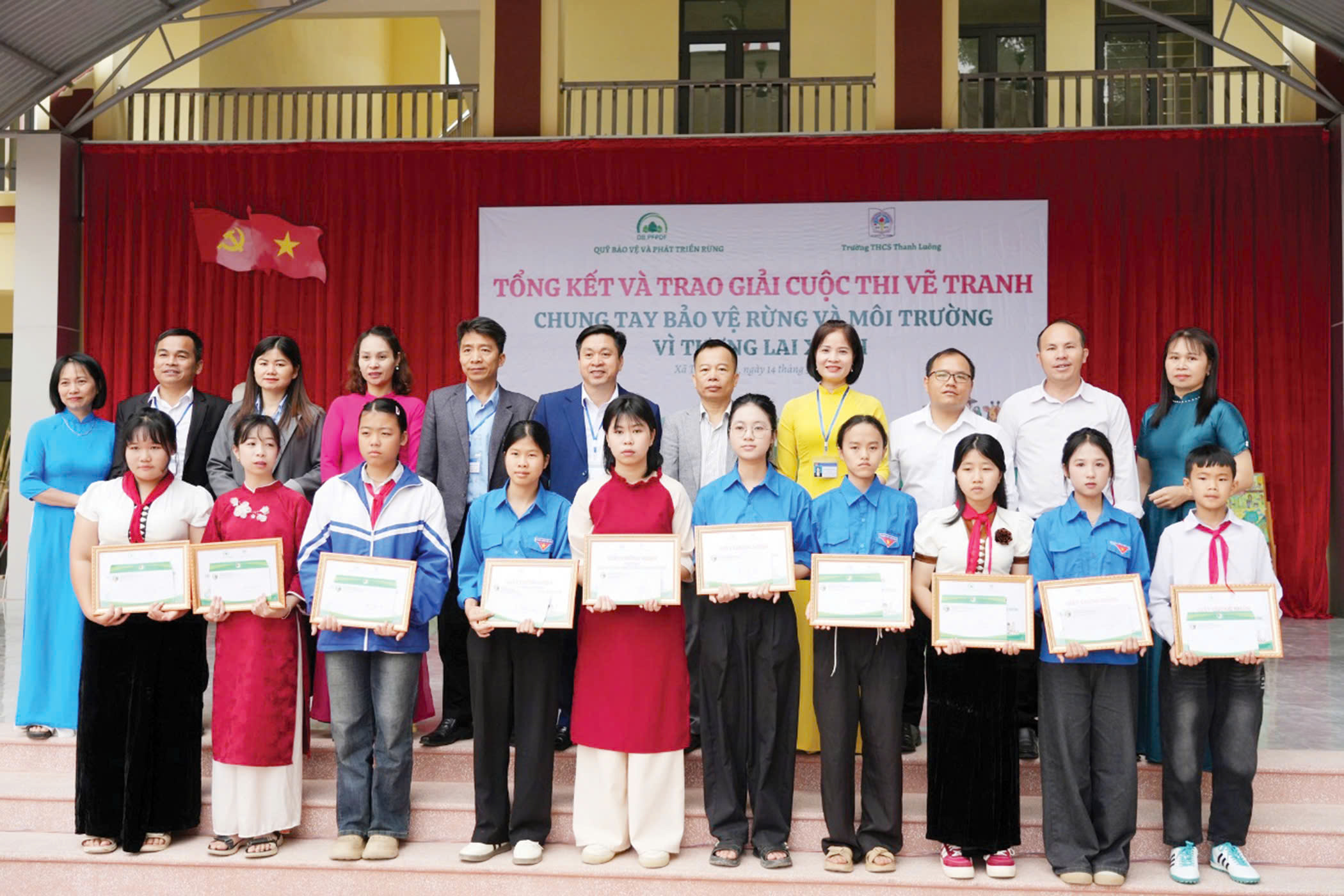 Quỹ Bảo vệ và Phát triển rừng Điện Biên với các em học sinh đạt giải cuộc thi