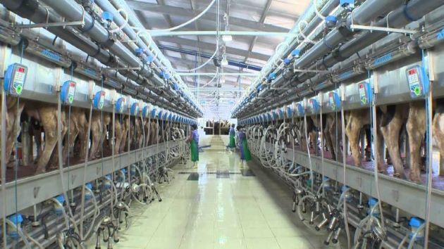 Bên dưới chỗ chúng tôi và Cường đứng, 120 con bò vừa yên vị vào vị trí vắt sữa. 120 máy vắt sữa sẽ chạy cùng một lúc. Trước khi vào vị trí vắt, bò được tập kết một chỗ, được tắm mát bằng dàn nước phun tự động từ trần trại, lại được phun sương cho mát (nếu là mùa nóng) và được thư giãn trong tiếng nhạc cổ điển trầm ấm. Tiếng nhạc âm vang trong khu trại rộng lớn, lẫn với tiếng trầm trầm của đàn bò hàng nghìn con cả ở khu vắt sữa và trong chuồng trại, khiến lúc mới đến chúng tôi cảm thấy mình đang ở trong một không gian lạ lẫm; kịp đến khi nhận ra đó là tiếng nhạc thư giãn cho những “cô” bò, thì bỗng có cảm giác muốn lặng lại để chiêm ngưỡng những cảnh tượng bên dưới.