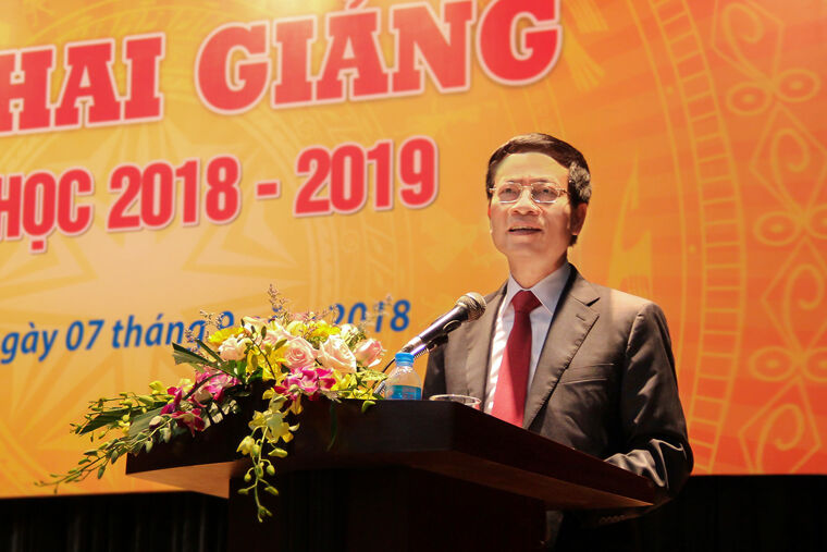 Quyền Bộ trưởng Nguyễn Mạnh Hùng phát biểu tại Lễ khai giảng năm học 2018-2019 tại Học viện Công nghệ BCVT