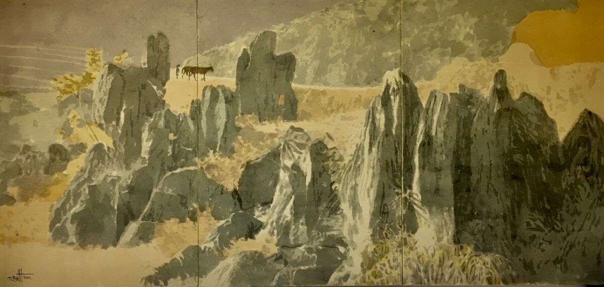 Tác phẩm tranh màu nước trên giấy dó của họa sĩ Vũ Thái Bình.