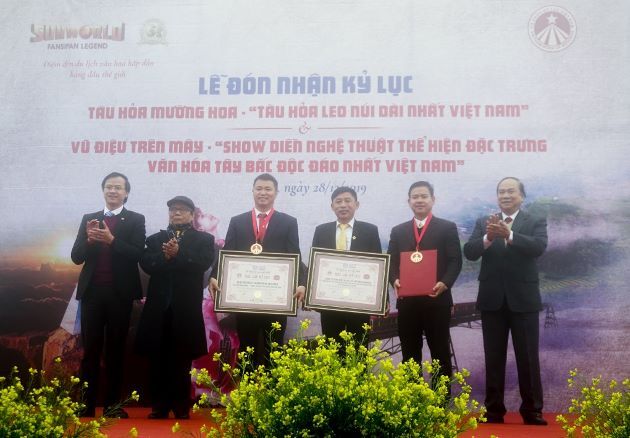 Theo đó, kỷ lục “Tàu hỏa leo núi dài nhất Việt Nam” đã được trao cho công trình Tàu hỏa leo núi Mường Hoa và kỷ lục “Show diễn nghệ thuật thể hiện đặc trưng văn hóa Tây Bắc độc đáo nhất Việt Nam” đã được trao cho show nghệ thuật “Vũ điệu trên mây”.