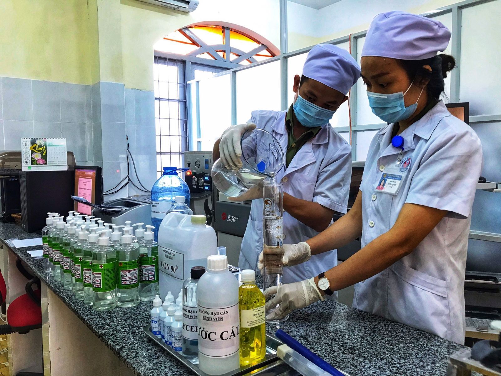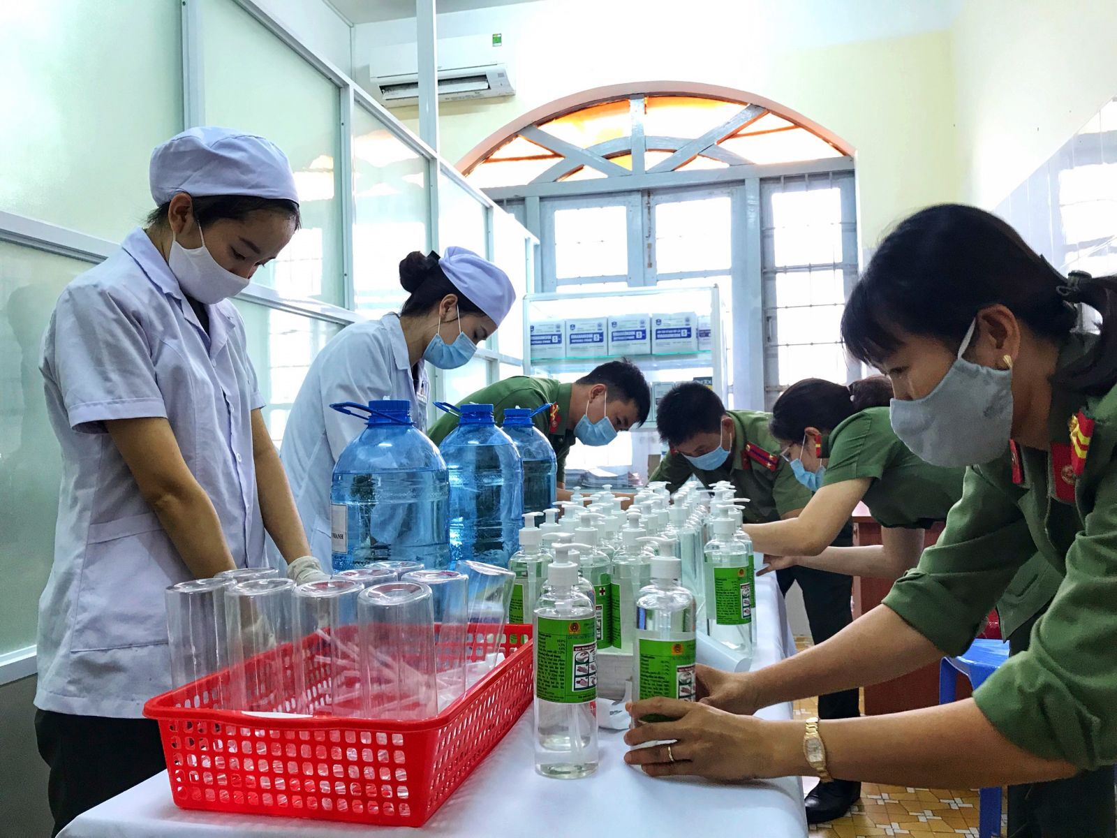 Tập thể y, bác sĩ cán bộ Bệnh viện Công an tỉnh (thuộc Phòng Hậu cần, Công an tỉnh Phú Yên) đã tích cực nghiên cứu để pha chế nước rửa tay sát khuẩn theo hướng dẫn của WHO