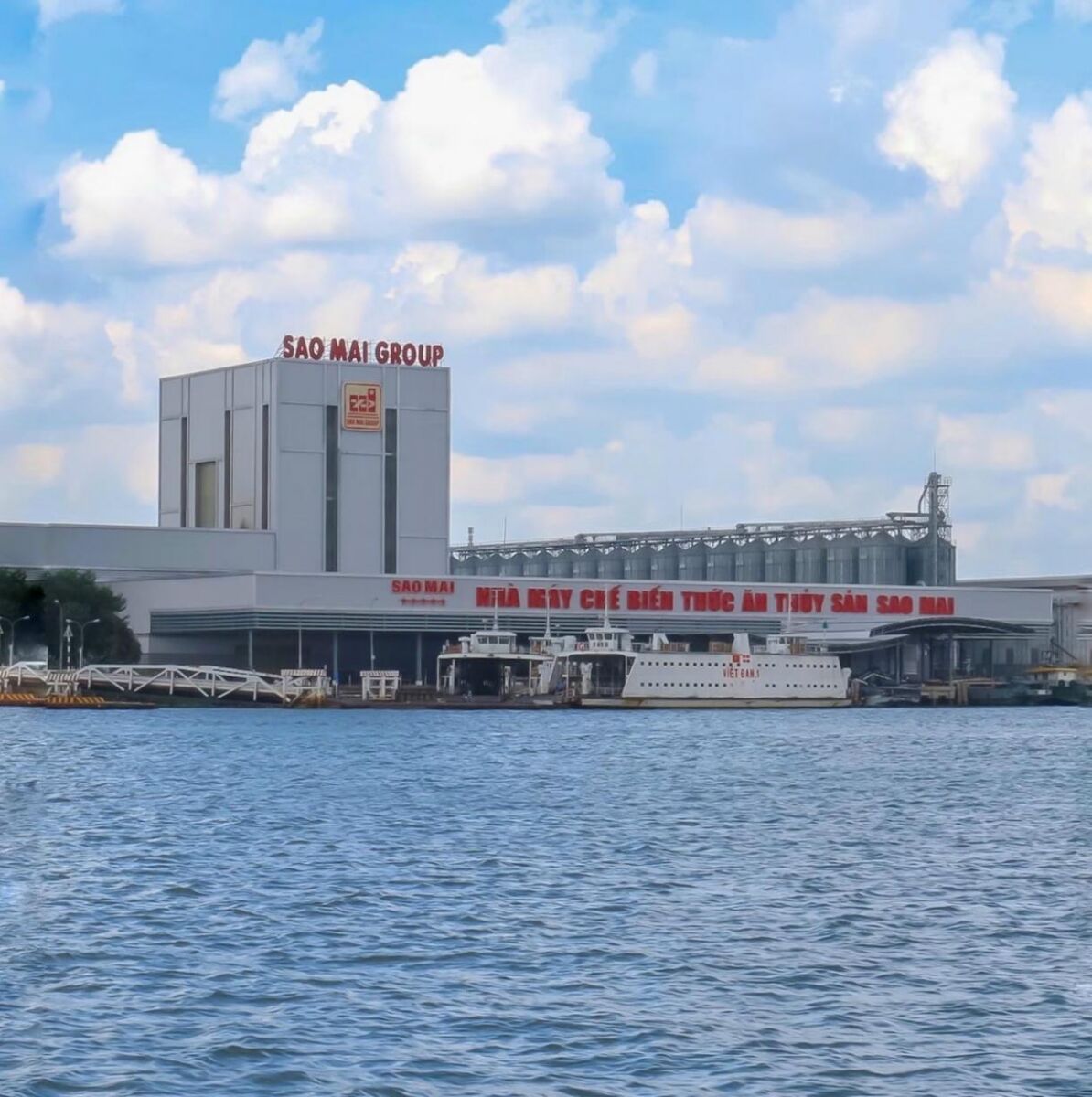 Nhà máy chế biến thức ăn thủy sản Sao Mai SuperFeed lớn nhất cả nước. (Ảnh: MK)