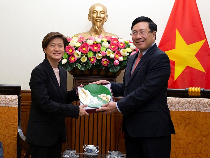 Đại sứ Catherine Wong cảm ơn sự ủng hộ, phối hợp chặt chẽ của Phó Thủ tướng, Bộ trưởng và Bộ Ngoại giao đã giúp Đại sứ hoàn thành tốt nhiệm vụ tại Việt Nam.