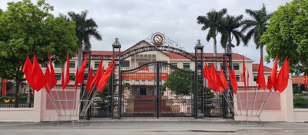 Cổng các cơ quan nhà nước cũng được chỉnh trang trang hoàng chào mừng Đại hội Đảng các cấp
