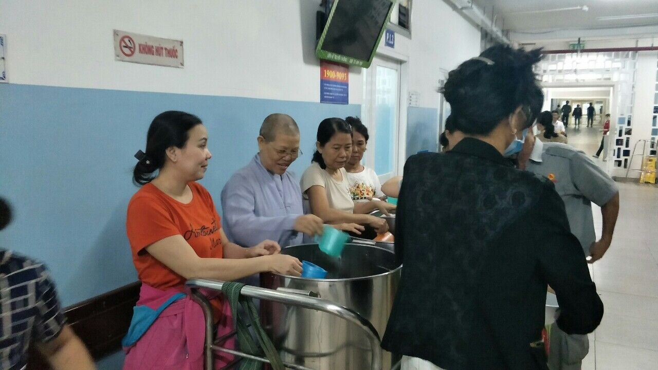 Sư cô với những xuất cơm từ thiện giúp bệnh nhân nghèo.