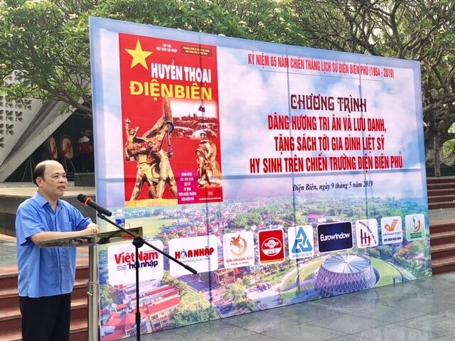 Thay mặt UBND tỉnh Điện Biên, đồng chí Mai Hoàng Hà, Phó Giám đốc Sở Lao động Thương binh Xã hội tỉnh Điện Biên gửi lời cảm ơn chân thành nhất đến BTC chương trình, đặc biệt là Dự án Văn hóa Uống nước nhó nguồn - Tạp chí Việt Nam Hội nhập và các đơn vị đồng hành đã cùng làm nên hoạt động đền ơn đáp nghĩa hôm nay. Đồng chí cho rằng: Chương trình tặng sách Huyền thoại Điện Biên là một ý tưởng độc đáo và mang giá trị giáo dục sâu sắc, từ thành quả tiếp nhận từ chương trình, Sở Lao động Thương binh Xã hội sẽ triển khai gửi đi một cách nhanh nhất đến các gia đình Anh hùng Liệt sĩ và coi đó là nén tâm nhang mà những người thực hiện chương trình thành kính dâng lên anh linh các Anh hùng Liệt sĩ trên chiến trường Điện Biên Phủ cách đây 65 năm.