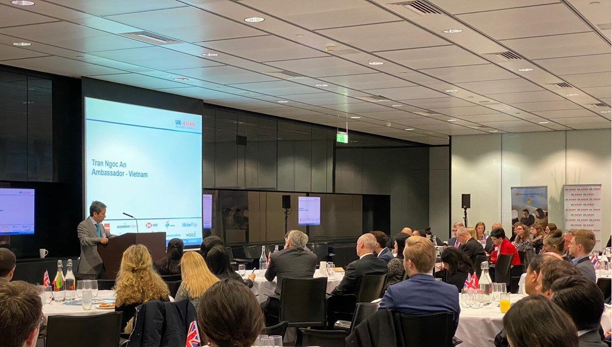 Đại sứ Việt Nam tại Anh, Trần Ngọc An giới thiệu vai trò Chủ tịch ASEAN 2020 của Việt Nam tại Hội đồng Kinh doanh Anh-ASEAN ngày 14/1 tại London.