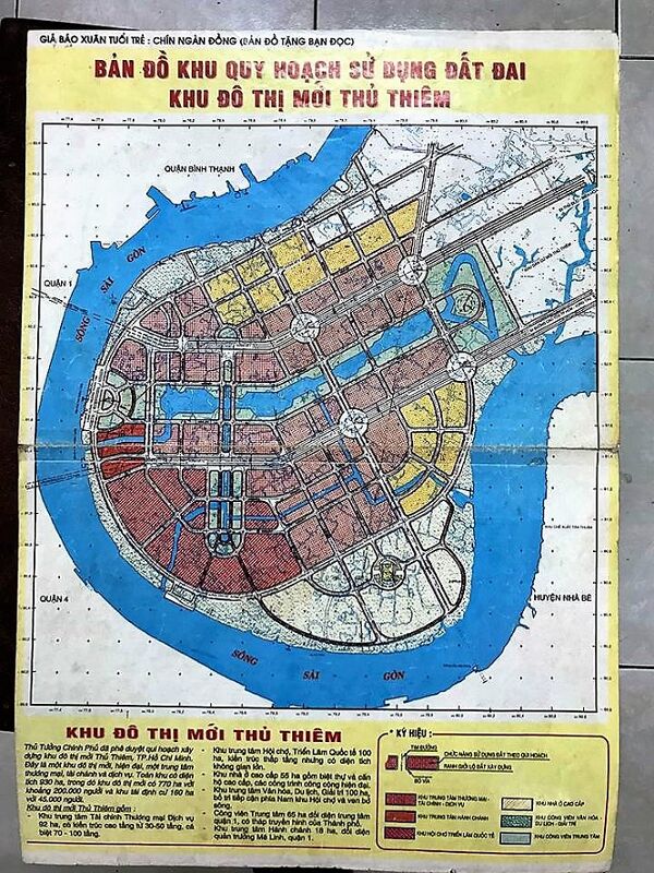 Bản đồ quy hoạch khu đô thị mới Thủ Thiêm mà người dân còn lưu giữ