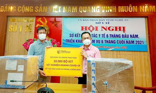 Ngày 9/7, đại diện Tập đoàn T&T Group đã trao tặng hàng chục nghìn bộ kit xét nghiệm Standard Q Covid-19 Ag cho các tỉnh như: Hà Nam (10.000 bộ), Nghệ An (10.000 bộ) và Lào Cai (20.000 bộ), “tiếp sức” cho chính quyền và nhân dân các địa phương vượt qua khó khăn trong cuộc chiến chống dịch COVID-19.