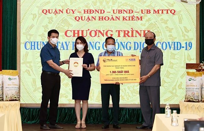 Hưởng ứng lời kêu gọi của Uỷ ban MTTQ Việt Nam quận Hoàn Kiếm, đồng thời với mong muốn đóng góp một phần nhỏ bé để cùng chung tay giúp đỡ người nghèo bị ảnh hưởng nặng nề bởi dịch bệnh, Tập đoàn T&T Group và Ngân hàng TMCP Sài Gòn – Hà Nội (SHB) đã trao tặng 1.365 suất quà cho các hộ nghèo trên địa bàn quận Hoàn Kiếm. Mỗi phần quà tương ứng với 1.000.000 đồng tiền mặt và 10 kg gạo.
