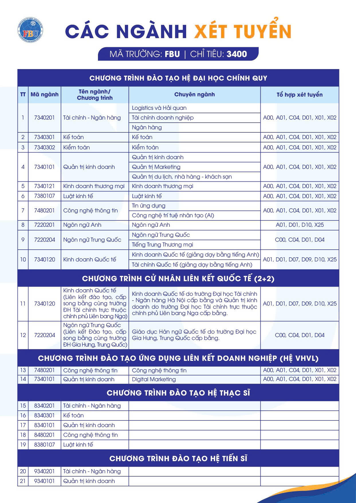 Thông tin tuyển sinh năm 2026 của Trường Đại học Tài chính - Ngân hàng Hà Nội