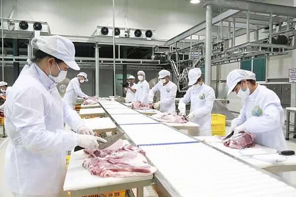 Dây chuyền chế biến thịt lợn sạch tại Công ty cổ phần Thực phẩm Song Đạt, xã Vạn Phúc, huyện Thanh Trì. Ảnh: Nhật Nam