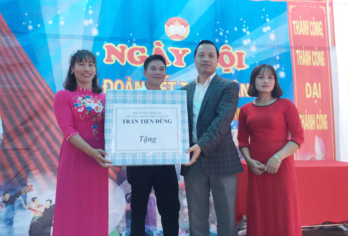 Đ/c Trần Tiến Dũng, Phó Bí thư Tỉnh ủy, Chủ tịch UBND tỉnh Lai Châu tặng quà nhân dân bản Hưng Bình