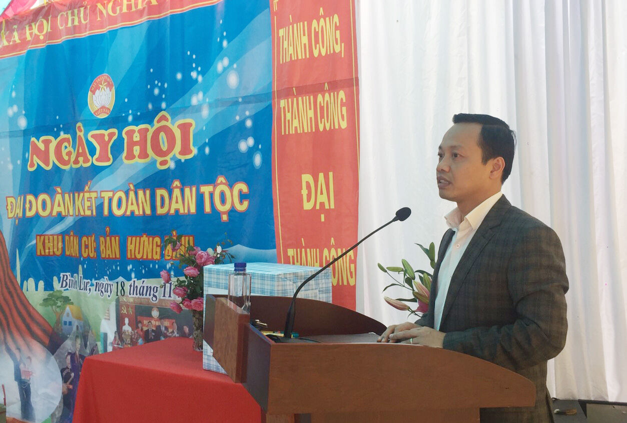 Phát biểu tại buổi lễ, đồng chí Trần Tiến Dũng - Phó Bí thư Tỉnh ủy, Chủ tịch UBND tỉnh Lai Châu đã đánh giá cao sự cố gắng, nỗ lực của Chi bộ, Ban công tác mặt trận và nhân dân bản Hưng Bình, xã Bình Lư, huyện Tam Đường trong những năm qua đã tích cực triển khai thực hiện các phong trào thi đua yêu nước, các cuộc vận động do Trung ương MTTQ Việt Nam phát động như: Phong trào "Toàn dân đoàn kết xây dựng đời sống văn hóa", "Chung sức xây dựng nông thôn mới, đô thị văn minh"... Đồng chí Chủ tịch cũng đề nghị nhân dân bản Hưng Bình tiếp tục phát huy tinh thần đoàn kết, thực hiện thắng lợi mọi nhiệm vụ, mục tiêu đặt ra. Chi bộ đảng, ban công tác Mặt trận của bản Hưng Bình cũng như Đảng bộ xã Bình Lư, Huyện ủy Tam Đường tiếp tục tuyên truyền, vận động nhân dân thực hiện tốt các chủ trương, nghị quyết của Đảng, chính sách pháp luật của Nhà nước; xây dựng đời sống văn hóa ở bản.