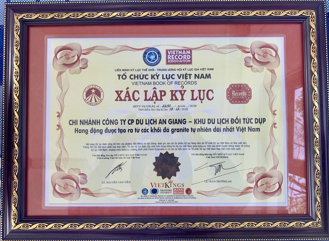 KDL Tức Dụp xác lập kỷ lục với hang động được tạo từ các khối đá granite tự nhiên dài nhất Việt Nam.