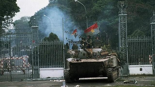 Xe tăng quân Giải phóng tiến vào chiếm Dinh Độc Lập ngày 30/4/1975.