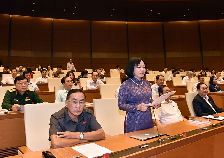 Đại biểu Quốc hội tỉnh Đồng Tháp phát biểu ý kiến thảo luận tại hội trường. Ảnh: Duy Linh.