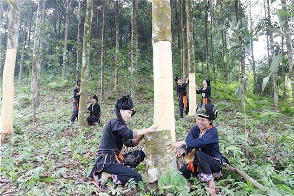 Đồng bào Văn Yên (Yên Bái) không chỉ sản xuất quế truyền thống mà còn thực hiện quy trình sản xuất quế hữu cơ, góp phần nâng cao giá trị cây quế và bảo vệ môi trường (Ảnh: TTXVN)