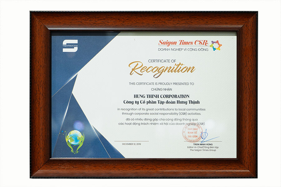 Trải qua 4 tháng đồng hành cùng chương trình Saigon Times CSR 2019 của Thời báo Kinh tế Sài Gòn, cùng với nhiều hoạt động hữu ích dành cho cộng đồng, Tập đoàn Hưng Thịnh đã vinh dự được trao chứng nhận Saigon Times CSR 2019 - Doanh nghiệp vì cộng đồng. Đây chính là một minh chứng cho những nỗ lực và đóng góp tích cực của Tập đoàn đối với cộng đồng trong suốt hành trình 18 năm qua.