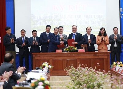 Lễ ký thoả thuận hợp tác, tài trợ, phát triển thể thao và bóng đá giữa Tập đoàn T&T Group và UBND tỉnh Hà Giang Chính vì vậy, thời gian vừa qua, tỉnh Hà Giang đã “âm thầm” đi tìm kiếm những nhà đầu tư có tiềm lực, muốn gắn bó với địa phương để phát triển lâu dài thể thao và bóng đá. Cuối cùng, T&T Group cùng “bầu” Hiển trở thành đơn vị được “chọn mặt gửi vàng”. Theo biên bản ghi nhớ, hai bên hợp tác toàn diện để phát triển thể thao và bóng đá thành tích cao, chuyên nghiệp của tỉnh Hà Giang; nhằm đẩy mạnh phong trào thể thao, góp phần phát triển kinh tế, xã hội của tỉnh Hà Giang. Theo đó, T&T Group trở thành nhà tư vấn chiến lược về phát triển thể thao thành tích cao và bóng đá chuyên nghiệp cho địa phương này. |