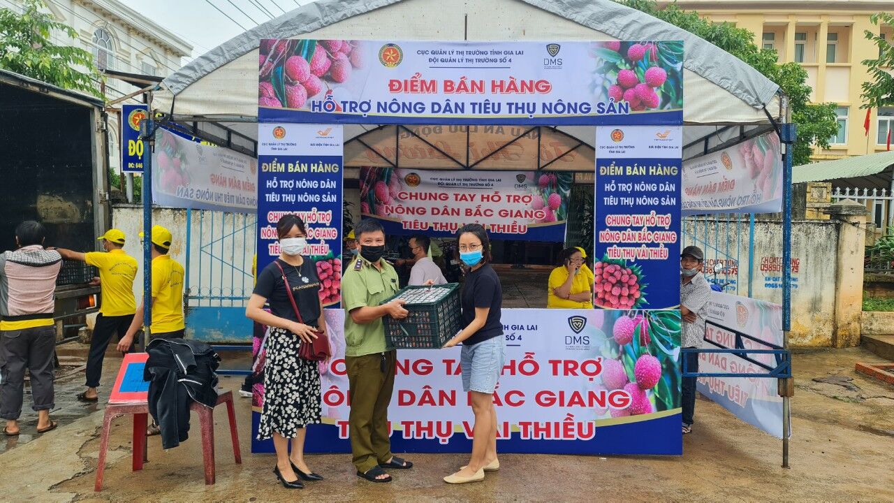 Cục QLTT tỉnh Gia Lai đã phối hợp với Bưu điện tỉnh triển khai kế hoạch nhập hơn 29 tấn vải thiều Bắc Giang đợt 1 thông qua Điểm bán hàng lưu động do Chi Đoàn Thanh niên của Cục QLTT tỉnh Gia Lai cùng với Tổ giao hàng do công chức, người lao động tại Cục đảm nhận. Toàn bộ hơn 29 tấn vải được “phủ sóng” đồng loạt tại các điểm bán lưu động được đặt tại Bưu điện các huyện, thị xã, thành phố thuộc địa bàn tỉnh Gia Lai. Ngoài ra, Tổ giao hàng còn chủ động “ship hàng” nhanh chóng cho các đơn hàng đặt online trên địa bàn tỉnh. Trong vòng 1 tiếng đồng hồ (8 giờ đến 9 giờ) mở bán tất cả hơn 29 tấn vải đã được người dân hỗ trợ mua hết.