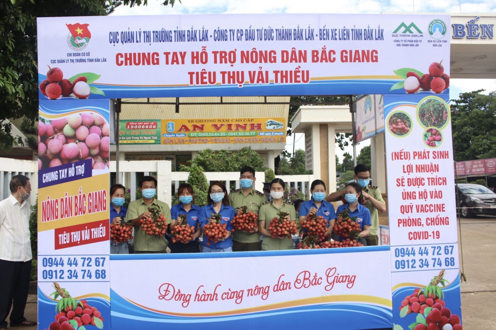 Trước đó, ngày 13/6/2021 đã tiêu thụ được 30 tấn vải thiều Bắc Giang đầu tiên được vận chuyển về tỉnh Đắk Lắk và đã được Cục Quản lý thị trường phối hợp với Bưu điện tỉnh kết nối tiêu thụ thành công.