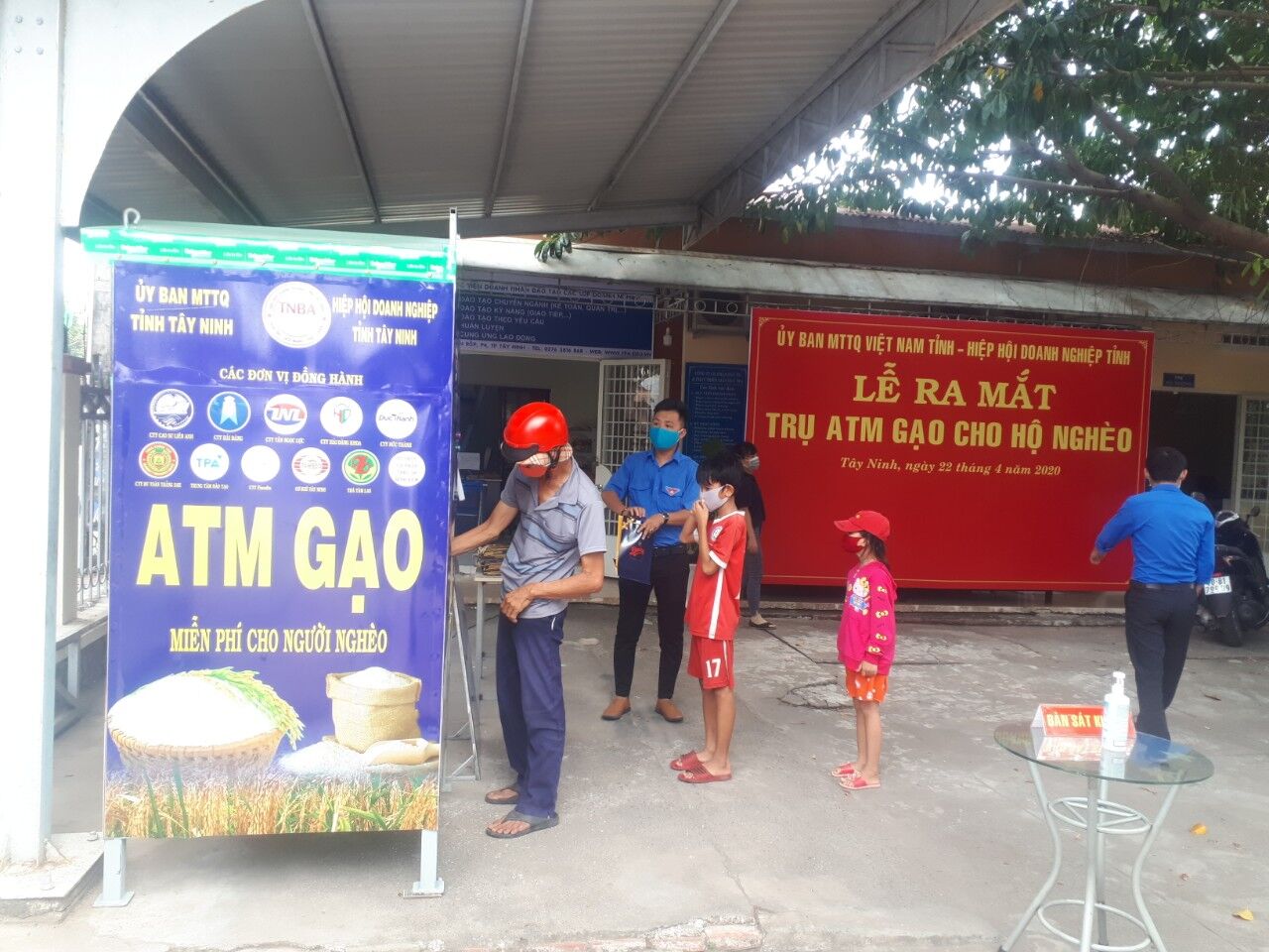 VNHN - Ngày 22/4, Hiệp hội Doanh nghiệp Tây Ninh phối hợp Uỷ ban MTTQVN tỉnh triển khai lắp đặt “ATM Gạo” đầu tiên để phát gạo miễn phí cho người dân, máy ATM gạo do Công ty cổ phần cơ khí Tây Ninh thiết kế và lắp đặt.