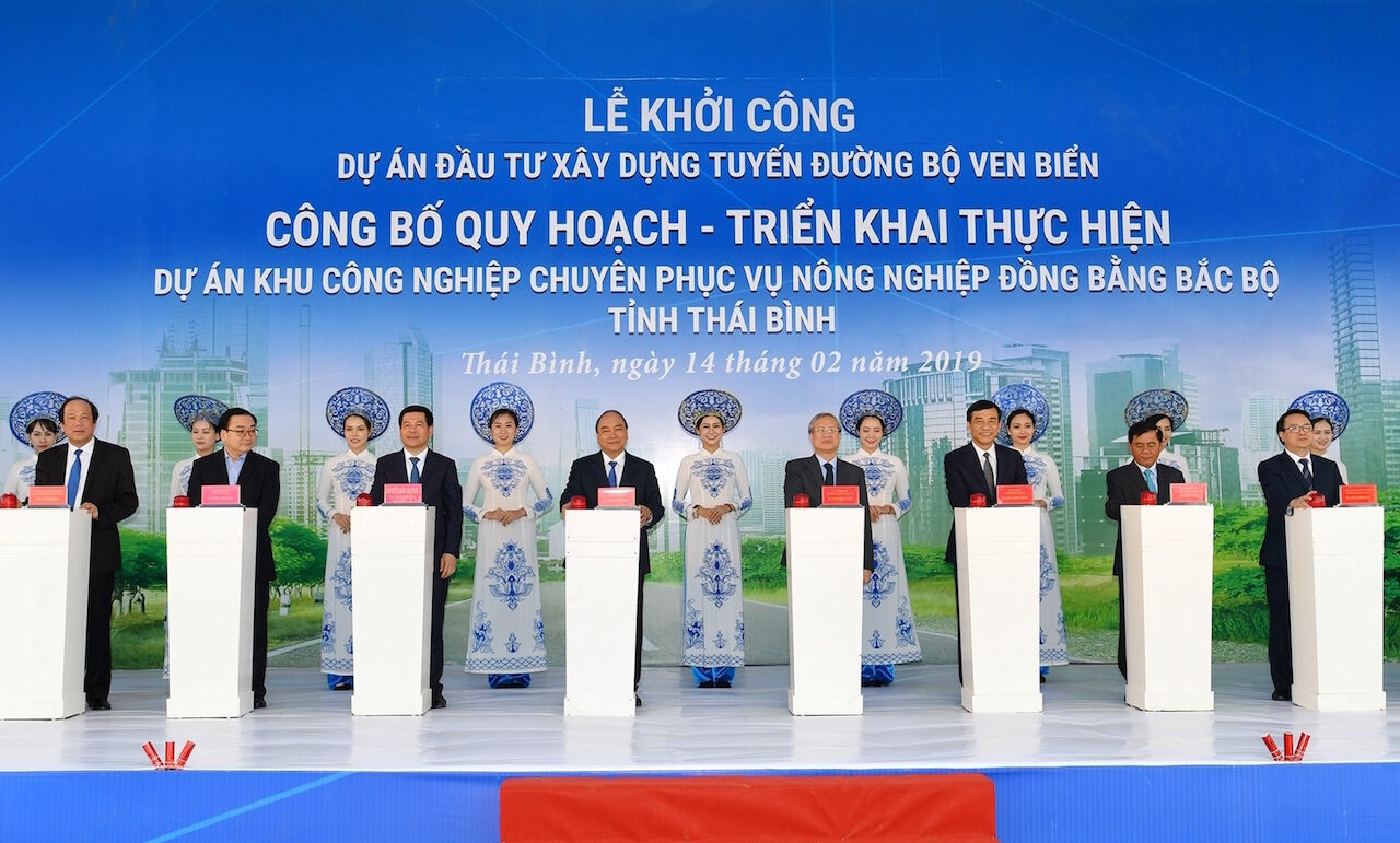 Thủ tướng Nguyễn Xuân Phúc dự lễ khởi công dự án Tuyến đường bộ ven biển tỉnh Thái Bình và công bố quy hoạch, triển khai thực hiện dự án Khu công nghiệp chuyên phục vụ nông nghiệp Đồng bằng Bắc Bộ.