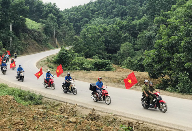 Đoàn viên, thanh niên xã Hòa Bình (Đồng Hỷ) tuyên truyền bầu cử tại các xóm trên địa bàn. Ảnh: Cao Thủy (Đồng Hỷ)