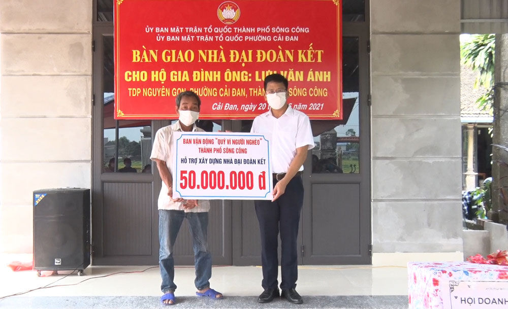 Gia đình ông Lưu Văn Ánh thuộc diện hộ cận nghèo nhiều năm nay. Bản thân ông Ánh sức khỏe yếu, 2 con đang tuổi ăn học, trong khi kinh tế của gia đình chỉ phụ thuộc vào việc làm ruộng và làm thuê của vợ ông nên rất khó khăn. Trước hoàn cảnh đó, Ủy ban MTTQ T.P Sông Công đã hỗ trợ 50 triệu đồng, phường Cải Đan hỗ trợ 2 triệu đồng (trích từ Quỹ Vì người nghèo của phường) để giúp gia đình ông Ánh xây dựng ngôi nhà mới.