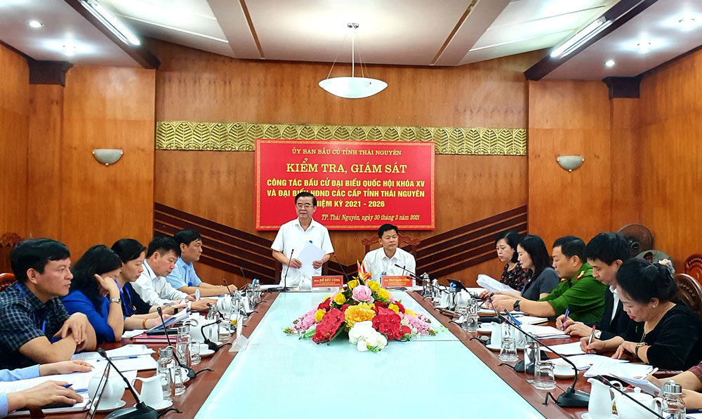 Cùng ngày, Đoàn công tác do đồng chí Đỗ Đức Công, Uỷ viên Ban Thường vụ Tỉnh uỷ, Phó Chủ tịch Thường trực HĐND tỉnh, Phó Chủ tịch thường trực UBBC tỉnh làm Trưởng đoàn đã kiểm tra, giám sát công tác chuẩn bị bầu cử đại biểu Quốc hội khóa XV và đại biểu HĐND các cấp nhiệm kỳ 2021-2026 trên địa bàn T.P Thái Nguyên . Theo báo cáo của UBBC T.P Thái Nguyên, ngay sau khi có chỉ đạo của cấp trên, T.P Thái Nguyên đã thành lập Ban Chỉ đạo, UBBC và Ban bầu cử các cấp; tổ chức quán triệt các văn bản liên quan đến công tác bầu cử đảm bảo đúng quy định, kế hoạch. Theo đó, số lượng đại biểu HĐND T.P Thái Nguyên khoá XIX, nhiệm kỳ 2021-2026 được ấn định là 40 đại biểu, được bầu ở 8 đơn vị bầu cử; đối với đại biểu HĐND cấp xã là 714 đại biểu, được bầu tại 200 đơn vị bầu cử. Trên địa bàn T.P Thái Nguyên cũng đã được phê chuẩn 243 khu vực bỏ phiếu. Sau hội nghị hiệp thương lần 2, danh sách sơ bộ người ứng cử đại biểu HĐND cấp thành phố gồm 76 người, người ứng cử đại biểu HĐND cấp xã gồm 1.336 người, đảm bảo cơ cấu, thành phần theo quy định. Phát biểu kết luận tại buổi kiểm tra, đồng chí Đỗ Đức Công đánh giá cao công tác chuẩn bị bầu cử của UBBC T.P Thái Nguyên. Đồng thời lưu ý, dân cư trên địa bàn T.P Thái Nguyên đông, thường xuyên biến động, bởi vậy, địa phương cần tập trung thực hiện tốt công tác rà soát, lập danh sách cử tri để đảm bảo quyền lợi của cử tri được tham gia bỏ phiếu; tổ chức tốt các Hội nghị lấy ý kiến nhận xét và tín nhiệm của cử tri nơi cư trú đối với người ứng cử, đồng thời chuẩn bị cho hội nghị hiệp thương lần 3 đúng quy định, đảm bảo công khai, minh bạch…