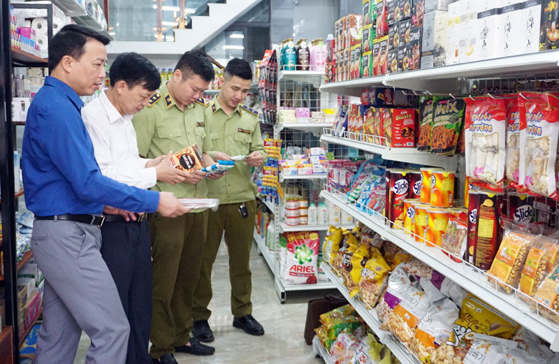 Đoàn liên ngành của tỉnh kiểm tra các điều kiện đảm bảo an toàn thực phẩm tại cửa hàng tự chọn Phương Nam, ở thị trấn Hùng Sơn (Đại Từ).