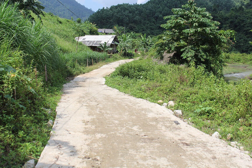 Đường bê tông mới xây dựng dẫn vào bản người Mông, người Tày do Công ty KTKS Thăng Long tài trợ