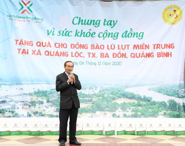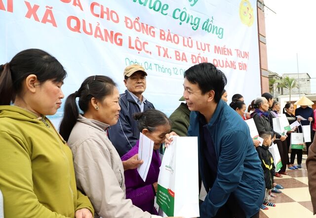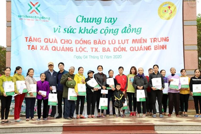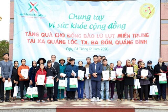 Nối tiếp các hoạt động ủng hộ đồng bào lũ lụt miền Trung trong thời gian qua, tập thể cán bộ nhân viên Công ty Cổ phần Đầu tư Sức Khỏe Cộng Đồng đã tổ chức quyên góp tiền mặt và sản phẩm dinh dưỡng tổng trị giá hơn 160 triệu đồng, trao tặng cho 160 hộ gia đình tại xã Quảng Lộc, Ba Đồn, Quảng Bình.