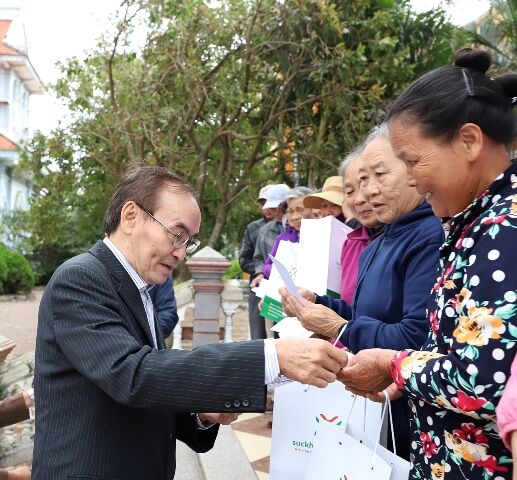 Linh mục Giuse Trần Văn Điển, mục vụ tại Giáo xứ Vĩnh Phước nhận ủng hộ từ Ban lãnh đạo Công ty CP Đầu tư Sức Khỏe Cộng Đồng