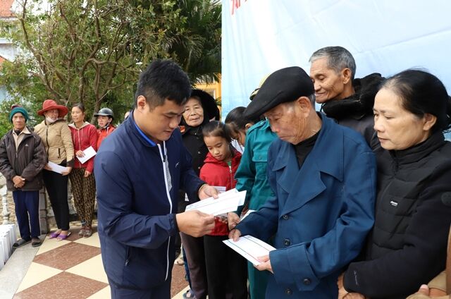 Ông Vũ Xuân Trường – Tổng Giám đốc Công ty CP Truyền thông sức khỏe Trường An trao quà cho người dân
