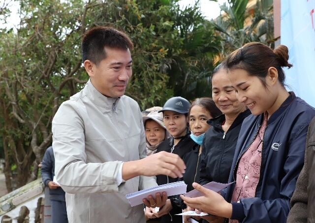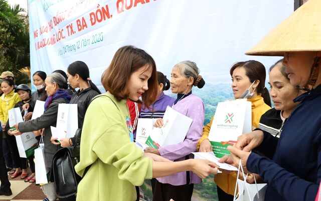 Tại hai thôn Vĩnh Phước và Vĩnh Lộc thuộc xã Quảng Lộc được Linh mục Giuse Trần Văn Điển, mục vụ tại Giáo xứ Vĩnh Phước đã quy tụ bà con cả những người không cùng tôn giáo, đến sân nhà thờ để được trao nhận trực tiếp những phần quà yêu thương chia sẻ từ những tấm lòng thiện hảo của cán bộ nhân viên công ty. Phát biểu tại buổi trao quà, ông Tạ Quang Vinh – Chánh văn phòng Trung ương Hội đã bày tỏ sự đồng cảm với những thiệt hại mất mát do lũ lụt gây ra, ảnh hưởng nặng nề tới đời sống cũng như công việc của người dân nơi đây. Qua đó, cũng mong người dân quyết tâm vươn lên bằng những hy sinh nỗ lực cải thiện đời sống hàng ngày qua lao động, và tình nhân ái tương hỗ lẫn nhau.