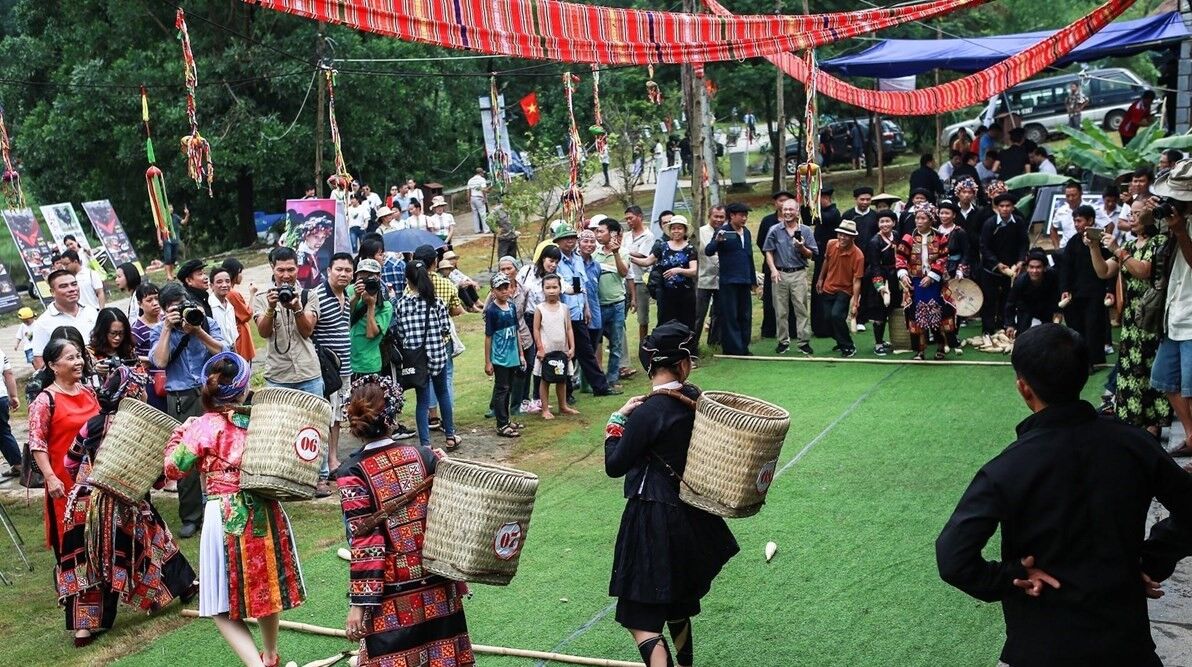 Đồng bào người Mông tái hiện các trò chơi truyền thống tại Làng văn hóa-Du lịch các dân tộc Việt Nam. Ảnh: Internet