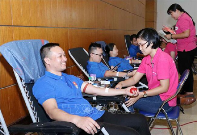 Đoàn viên, thanh niên tham gia hiến máu tình nguyện (Ảnh: TTXVN)