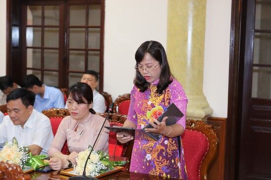 Đồng chí Bùi Thị Thanh, Phó Giám đốc Sở Giáo dục và Đào tạo phát biểu