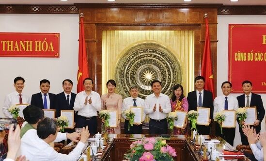 Đồng chí Đỗ Trọng Hưng, Uỷ viên Trung ương Đảng, Bí thư Tỉnh ủy, Chủ tịch HĐ ND tỉnh, Trưởng đoàn ĐBQH tỉnh Thanh Hoá, và đồng chí Đỗ Minh Tuấn, Phó bí thư Tỉnh ủy, Chủ tịch UBND tỉnh trao quyết định cho các đồng chí được điều động và bổ nhiệm