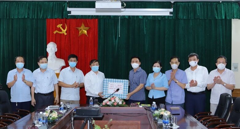 Đồng chí Bí thư Tỉnh ủy Đỗ Trọng Hưng và các đồng chí lãnh đạo tỉnh tặng quà động viên cán bộ, bác sĩ Trung tâm kiểm soát bệnh tật Thanh Hóa