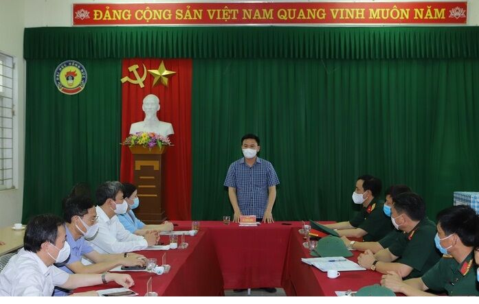 Đồng chí Đỗ Trọng Hưng đến thăm và động viên cán bộ, bác sĩ, chiến sĩ đang thực hiện nhiệm vụ giám sát các trường hợp các ly tập trung tại Trung tâm Giáo dục Quốc phòng - An ninh (trường ĐH Hồng Đức).