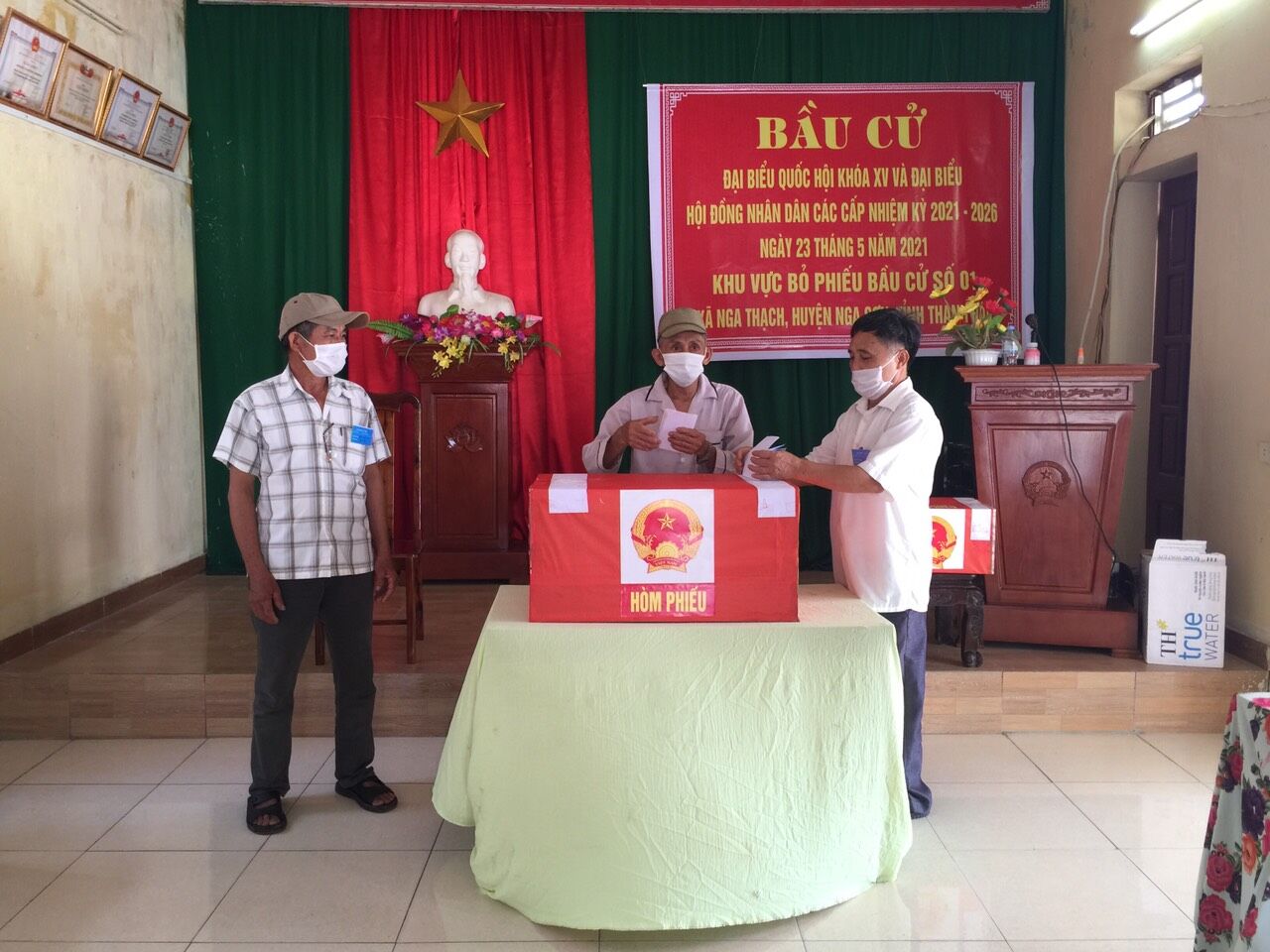 Cử tri thực hiện bỏ phiếu tại Khu vực bỏ phiếu số 01, xã Nga Thạch, huyện Nga Sơn